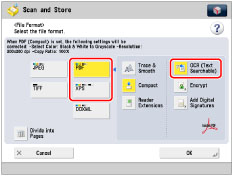 Even if you select [OCR (Text Searchable)], text may not be detected correctly in some cases.(See "If OCR (Text Searchable) Performs Inadequately.")