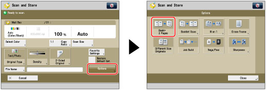 This mode enables you to scan facing pages of a book or bound original, and then print or store them as two separate pages.