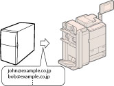You can set to automatically forward received I-fax documents that match specified forwarding conditions to any destination using the desired send settings. You can forward received I-fax documents to another machine (relay function), or store them in a Confidential Fax Inbox. You can also set automatic forwarding to activate at a specified time. Since received documents that do not match the forwarding conditions can also be forwarded to any desired destination, you can use this function to sort and deliver received I-fax documents to the appropriate destinations.