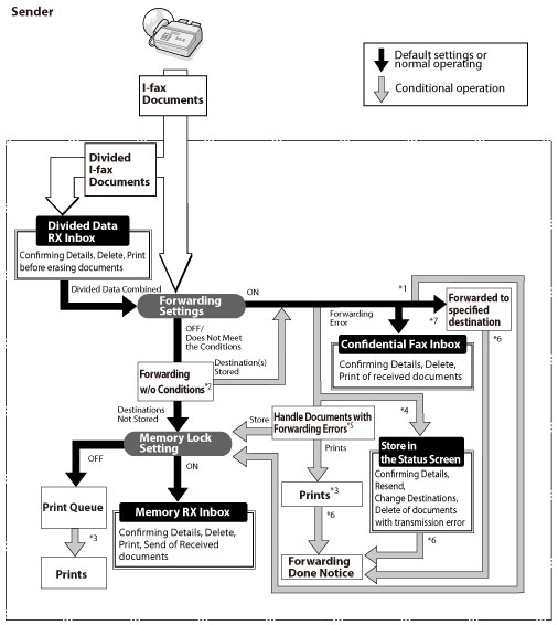 *1 If you set <Store/Print Received File> to 'On' in [Forwarding Settings], forwarded documents are either printed or stored in the Memory RX Inbox.