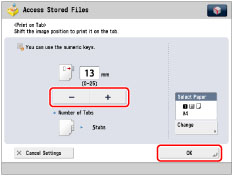 Make sure that the Number of Tabs shown on the touch panel display is the same as the number of tabs on the tab paper loaded in the paper source.