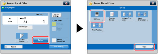 This mode is only available for printing files stored in the Advanced Space, the Advanced Space of another imageRUNNER ADVANCE machine on the network, or memory media.