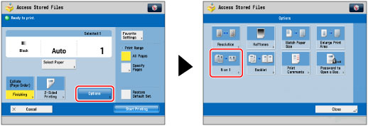 This mode is only available for printing files stored in the Advanced Space, the Advanced Space of another imageRUNNER ADVANCE machine on the network, or memory media.