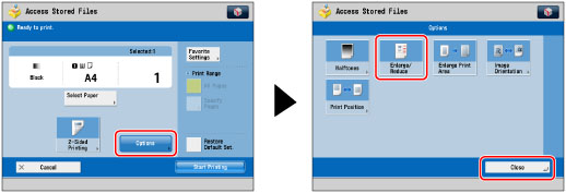 Press [Options] → [Enlarge/Reduce] → [Close].