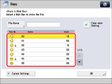 (Stop) while copying in the Store in Mail Box mode (Copy upon Storing), the job is not paused, but cancelled.You cannot store scanned documents in the Memory RX Inbox or a Confidential Fax Inbox.