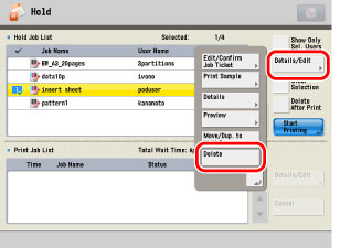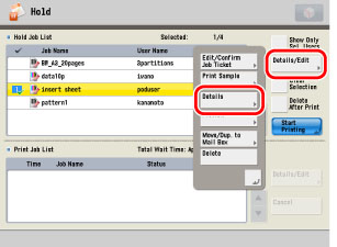 If you select multiple jobs and press [Details], only the details of the selected (highlighted) job are displayed.