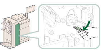 When returning the saddle stitcher unit to its original position or closing the cover, be careful not to get your fingers caught, as this may result in personal injury.