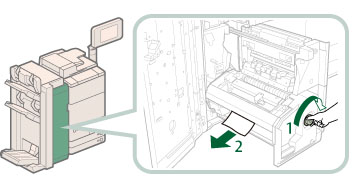 Remove any jammed paper in the output area of the saddle stitcher unit.