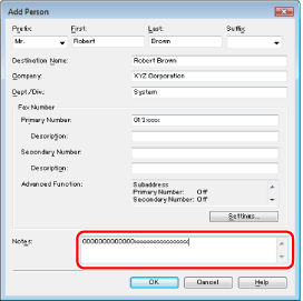 You can also edit previously registered single person addresses. For more information, click [Help] in the bottom right-hand corner of the fax driver window to view the online help.