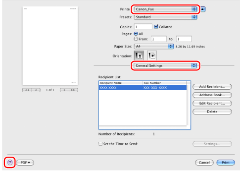 Select your fax from [Printer] → select a preferences pane → click [].