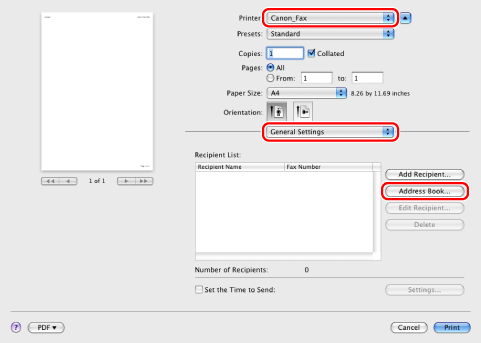 Depending on the fax model, you can click [Settings] and set a subaddress.