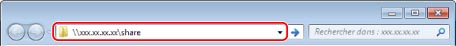 Cliquer sur [Démarrer] → [Tous les programmes] → [Accessoires] → [Explorateur Windows] → entrer le chemin suivant dans <Adresse> (sensible à la casse)