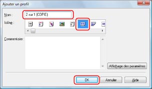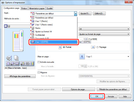 Sélectionner [2 sur 1 (COPIE)] sous [Profil] → cliquer sur [OK].
