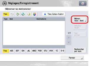 → [Définir destinataire] → [Mémoriser destinataire] → [Mémor. nouv. dest.].