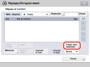 [Transf. sans conditions] s'affiche dans les réglages de transfert. Sélectionner [Transf. sans conditions] → appuyer sur [Valider/Invalider] pour définir ce réglage sur "Oui".