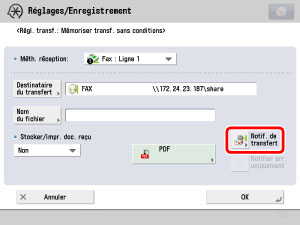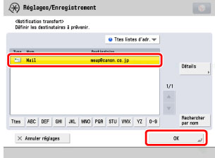 Sélectionner le destinataire auquel envoyer une notification de transfert → appuyer sur [OK].
