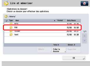 L'adresse du dossier créé pour les documents envoyés par fax est mémorisée dans le carnet d'adresses.