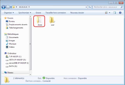 Saisir le [Nom d'hôte] "\\<adresse IP de cette machine>\share".