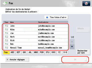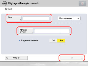 Saisir [Nom] et [Adresse E-mail] → appuyer sur [OK].