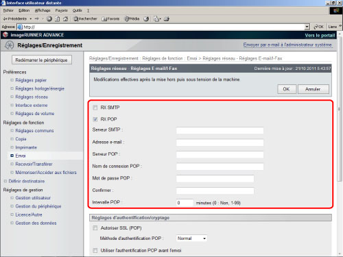 (Ceci réfère à l'intervalle utilisé par la machine imageRUNNER ADVANCE sur le serveur de messagerie pour vérifier les e-mails) |