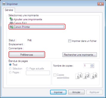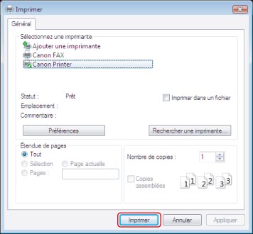 L'écran d'impression peut être différent suivant le type d'application utilisé.