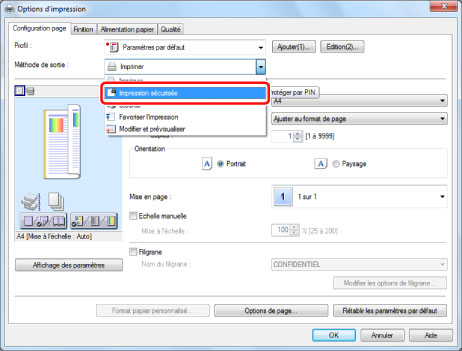 Sélectionner [Impression sécurisée] comme [Méthode de sortie].