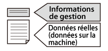 Les données sont divisées lors de la mémorisation en "informations sur la gestion", qui comprennent entre autres le nom de fichier, les "données réelles" et le contenu des données. Les informations sur la gestion sont gérées avec une méthode exclusive aux machines imageRUNNER ADVANCE.