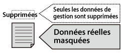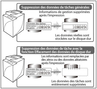 * La fonction Suppression de données du disque dur effectue le traitement en temps réel, évitant ainsi le traitement par lots. Cette fonction permet aussi de supprimer les données de journaux des tâches.