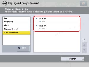 → [Préférences] → [Réseau] → [Réglages Firewall] → [Filtre adresse MAC].