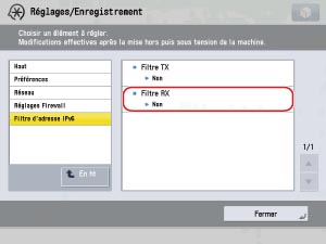 Appuyer sur [Filtre d'adresse IPv6] → [Filtre RX].