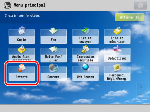 Appuyer sur [Attente] sur l'écran Menu principal.
