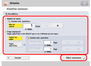 Spécifier le nombre d'impressions et la plage d'impression → appuyer sur [Démarrer l'impr.].
