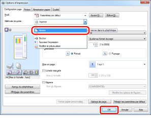 Lors de l'envoi d'une tâche, cette dernière peut être directement imprimée ou conservée en file d'attente.