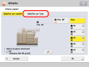 En cas de rupture de papier, le type de papier est modifiable avant l'impression.