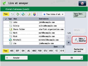 Cliquer sur [Carnet d'adresses] → [Liste d'adresses 01] dans l'écran Liste d'adresses.