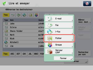 Appuyer sur [Mémor. nouv. dest.] → [Fichier].