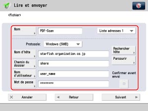 \\Nom de l'ordinateur\PDF-Lecture Saisir le nom de l'ordinateur trouvé à l'étape 1 dans " Création d'un dossier partagé" ( Sous Windows) ou l'étape 2 dans " Création d'un dossier partagé" ( Mac).