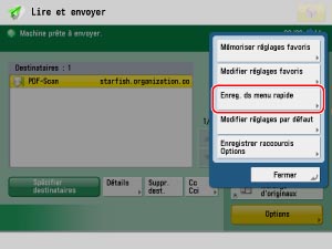 Mémorisation d'une procédure d'envoi de la machine dans le menu rapide