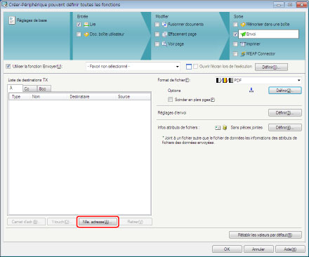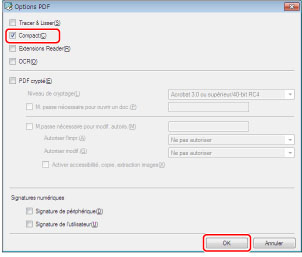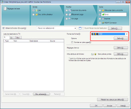 Dans le champ [Format de fichier], sélectionner [PDF] → cliquer sur [Définir (2)].