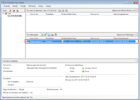 Sur la liste [Flux téléchargés], sélectionner le flux ([Réduire le format papier et envoyer]).