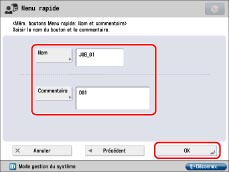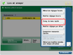 Le nombre de boutons personnels pouvant être enregistrés peut être inférieur au nombre maximum, selon l'utilisation de la mémoire de la fonction Menu rapide.