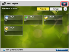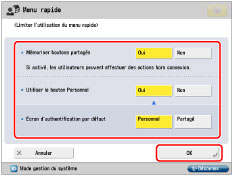 si <Mémoriser boutons partagés> est réglé sur [Oui], les utilisateurs généraux et les utilisateurs non autorisés peuvent mémoriser, modifier ou supprimer un bouton commun, ou modifier la taille des boutons ou l'image du papier peint.
