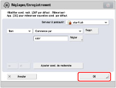 Il peut être nécessaire de configurer les serveurs LDAP à l'avance, selon l'environnement réseau. (Voir "Mémorisation d'un serveur LDAP".)