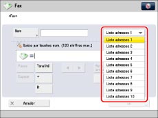 Dérouler la liste → sélectionner une liste d'adresses dans l'une des listes d'adresses 1 à 10.