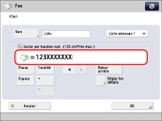 Saisir un nom pour le destinataire associé au numéro de fax → appuyer sur [OK].