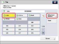 En cas de sélection d'un bouton de composition 1 touche contenant déjà un destinataire, passer à l'étape 3.