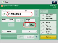 Pour savoir comment exécuter cette opération à partir de l'écran Fax, voir