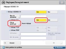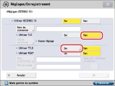 Si <Utiliser TLS> est réglé sur "Oui", il est impossible de définir <Utiliser TTLS> ou <Utiliser PEAP>.