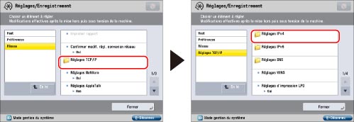 Appuyer sur [Réglages TCP/IP] → [Réglages IPv4].