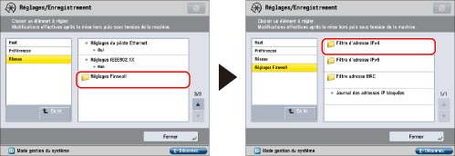 Appuyer sur [Réglages Firewall] pour [Réseau] → [Filtre d'adresse IPv4].